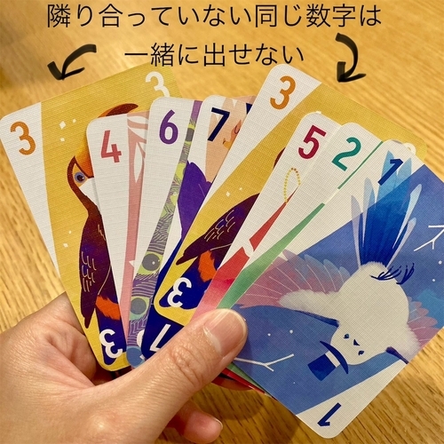 ここで注意なのが手札は絶対に並び替えてはいけません。「ナナトリドリ」では終始手札を並び替えません。配られたそのままの並びで手札とします。