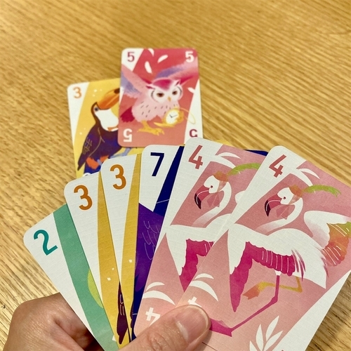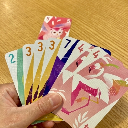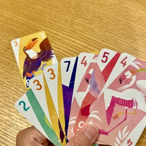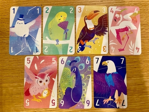その点「ナナトリドリ」ってすごく分かりやすい。1~7までの数字しかないしジョーカーも無し。「数字が大きい方が強い」「枚数が多いほうがもっと強い」の2つが分かれば小さい子も一緒にプレイできますね。