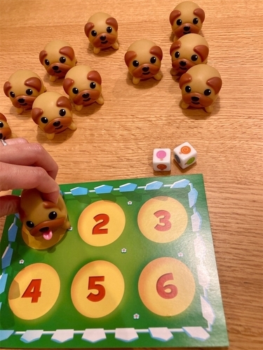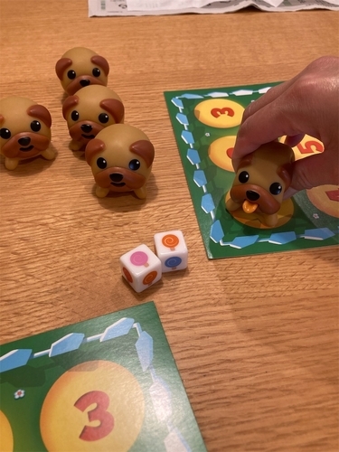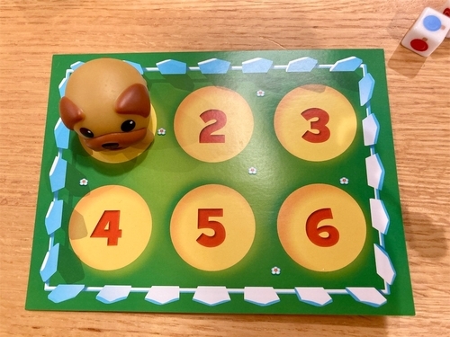 見事正解したら、自分のドッグランボードにそのパグを置きます。ドッグランボードには1~6の数字が書いてあるので、1から順に置いていきます。