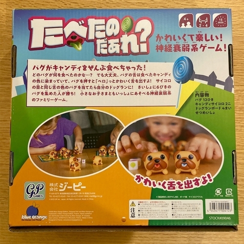 ルールにややこしい点もなく、”サイコロと同じ色の舌のパグを探していく”ということが分かれば、3歳でもできるような内容だと感じます。