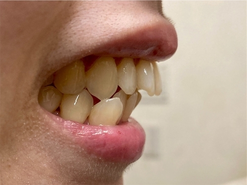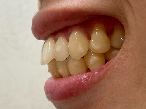 右から見ても、犬歯の角度が変わっているのが分かります。