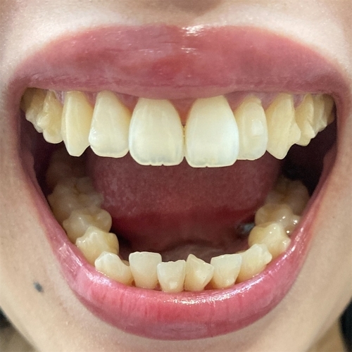 交叉咬合の右下犬歯はまだ完全に内側に入っているわけではありませんが、ほとんど目立たないくらいになってきました。