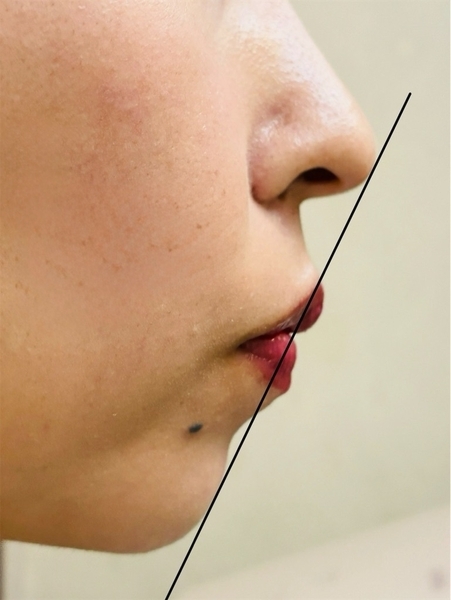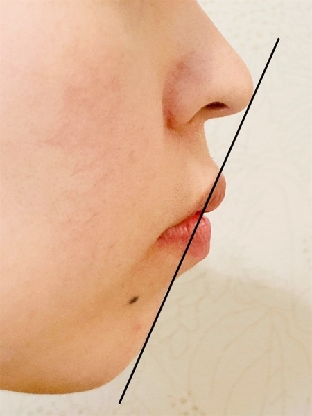 見ての通り、矯正後も鼻と顎を結ぶラインから唇が飛び出しております。